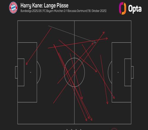 太全面了,凯恩单场完成11次成功长传创个人该数据新高