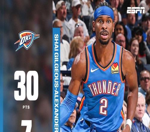 北京时间今日,在NBA杯1/4决赛中,俄克拉荷马雷霆队在主场以138-89大胜菲尼克斯太阳队,豪取24胜1负的历史最佳开...