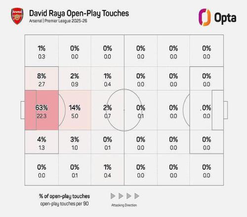 自拉亚加盟阿森纳以来,只有身高马大的大马丁在禁区内接住球的次数比他更多。而且,一旦拉亚拿到球,他往往会立即发动进攻——通常不是用脚,而是通过精准的手抛球。