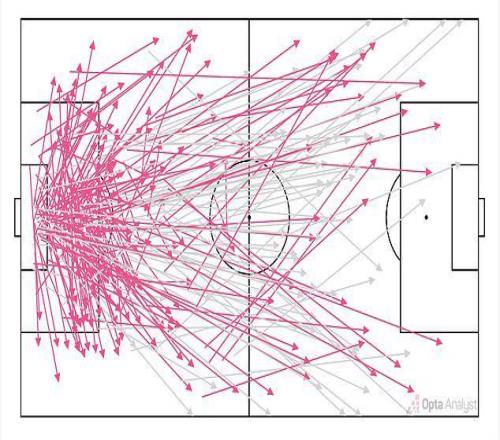 但多样性才是关键,这一点可以从拉亚本赛季的英超传球图中看出。