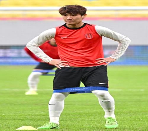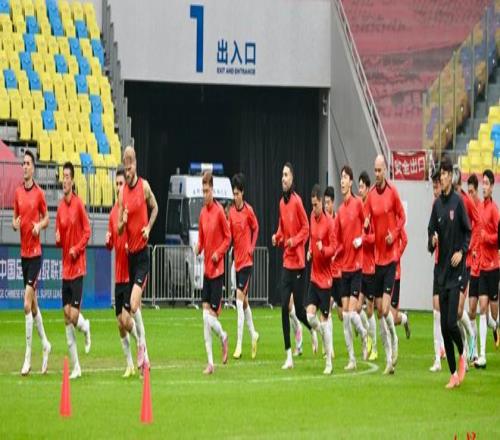 ▲成都蓉城队员们在赛前进行踩场训练