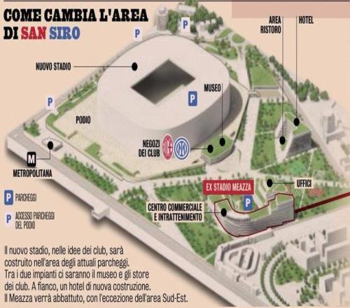 有了属于自己的球场后,两支球队不但每年可各自节省400万欧元的租金,还能通过承接商业活动、出售冠名权等方式带来上亿欧元的额外收入。据悉,圣西罗球场重建计划的首笔融资额度为3.54亿欧元,高盛、摩根士丹利、三菱日联银行、摩根大通等巨头都会参与进来。