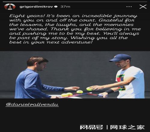 “八年了!无论在球场上还是球场外,与你共度的这段旅程都意义非凡。感谢那些我们共同分享的教诲、欢笑与回忆。谢谢你始终相信我,鞭策我成为更好的自己。你将永远是我人生故事的一部分。祝愿你在新的征程中一切顺利!”迪米特洛夫的声明,没有竞技体育常见的火药味,更像是对一段漫长生命旅程的温柔回望。在成绩波动、排名浮沉的残酷世界里,能持续八年的合作关系,本身就已成为一种令人尊敬的传奇。