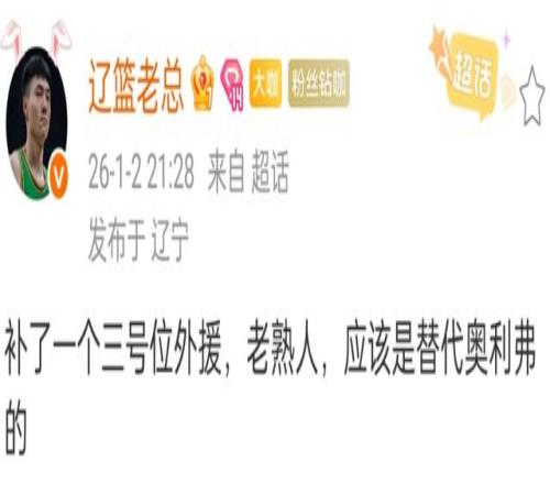 遭遇四连败之后,辽宁男篮主帅杨鸣在接受采访的时候表示,球队没有考虑更换外援,然而根据媒体人透露,辽宁男篮已经开始行动,一位CBA老熟人三号位已经确定加盟辽宁男篮,据了解这位外援大概率是马库斯亨特。