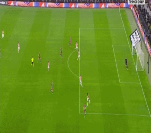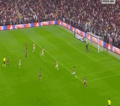 第5分钟,拉菲尼亚过掉乌奈-西蒙后传中,巴尔德吉没有顶到球