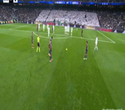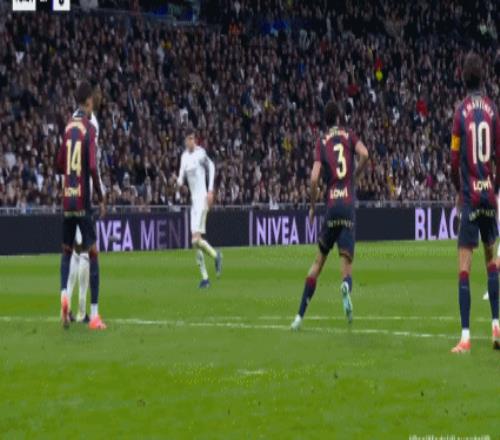第14分钟,贝林厄姆送任意球,巴勃罗-马丁内斯主罚打门被挡